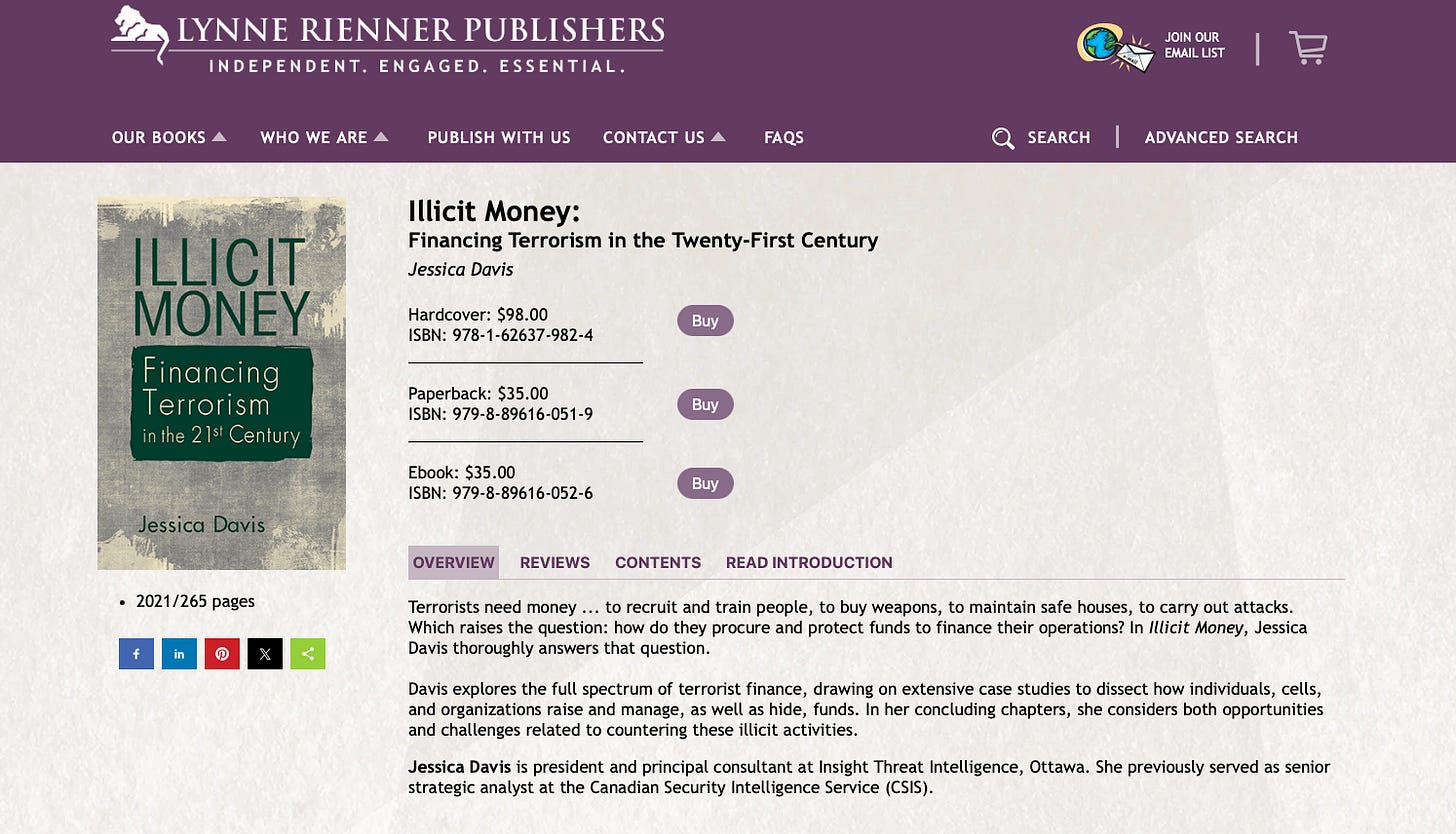 Hello, Insight Monitor subscribers! I wanted to flag that my second book, Illicit Money: Financing Terrorism in the 21st Century, is now out in paperback format. You can purchase it through the publisher here.