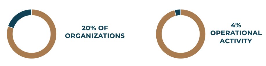In terms of the prevalence of terrorist financing in the charitable sector, it’s limited. Only 20% of terrorist organizations have a confirmed use of charitable fundraising or exploitation through charities. Operationally (attacks, plots and other activity) speaking, only 4% of attacks were financed in some way through the charitable sector.